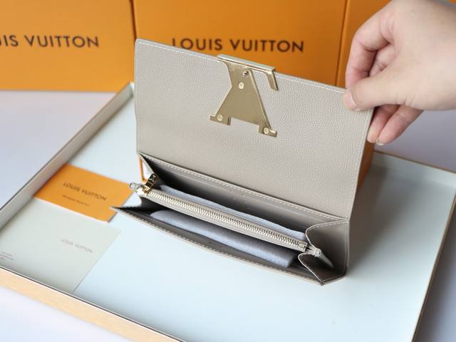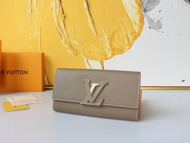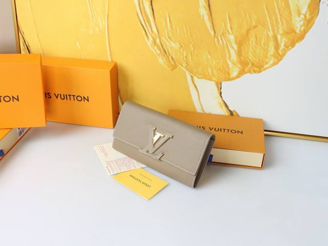 / 颜色 黑 粉 卡其尺寸 20X11型号M61248 缀以皮革覆面 Lv标志,这款优雅钱包的设计灵感来自经典Capucines系列,时尚而实用,并且足以容纳所有日