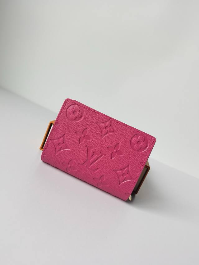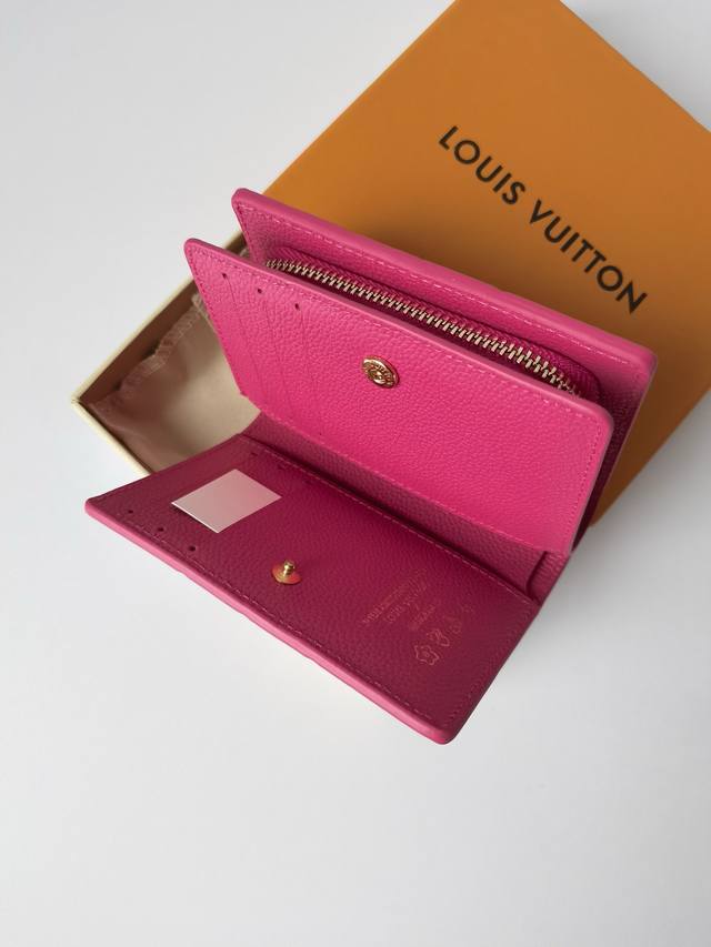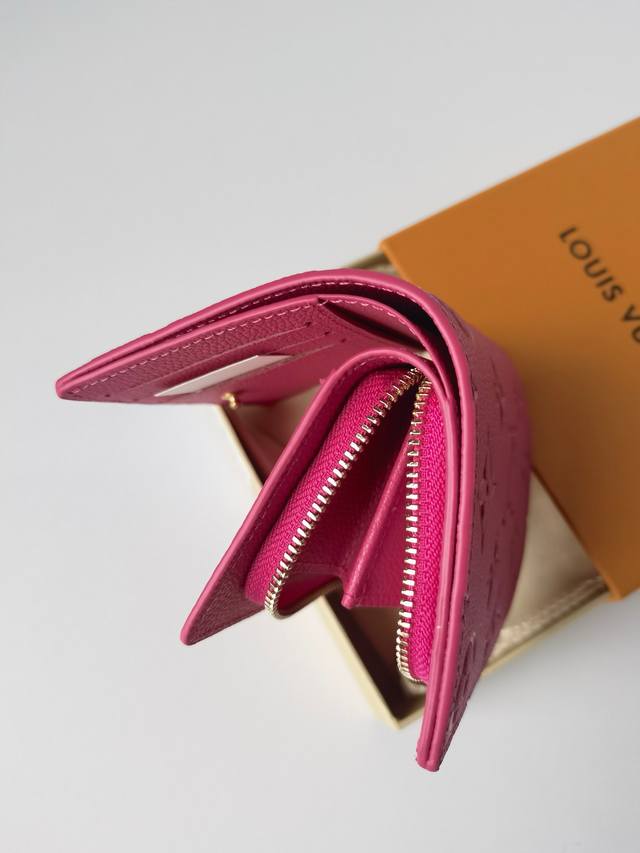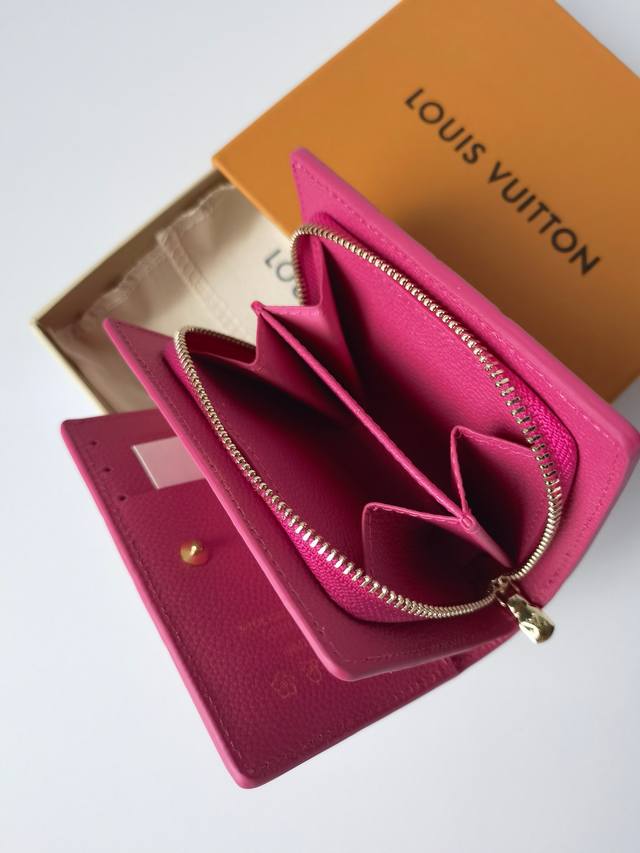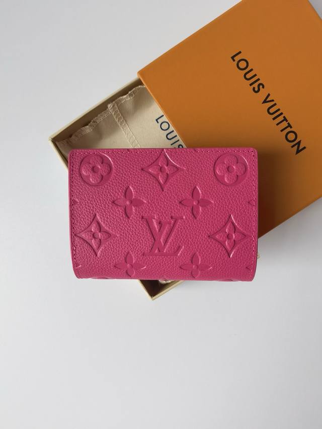 颜色 玫红 绿 兰尺寸 11X8.5X3.5型号 M13619 村上隆合作系列 本款 CléA 钱夹取材 Monogram Empreinte 软粒面皮革,以双重色调烘托 Monogram 压纹的瞩目气息。玲珑构型内设钞票隔层、拉链零钱袋和卡片夹层。