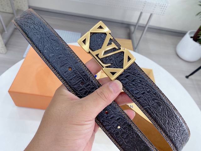 / 路易威登Louis Vuitton 法国 专柜品质 官网同步 宽度3.8Cm 精美钢扣头 原版意大利双面进口小牛皮原版花纹 手感极佳 上身郊果棒 商务休闲两用