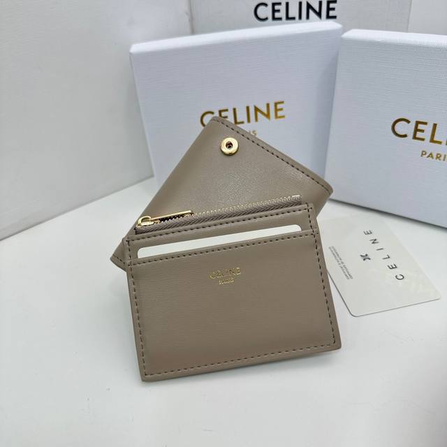 Celine新款卡包,Triomphe名片包,经典花纹大面内配平纹超纤,金色饰面Triomphe金属按扣开合,1个加厚主隔层,3个内侧卡槽。...