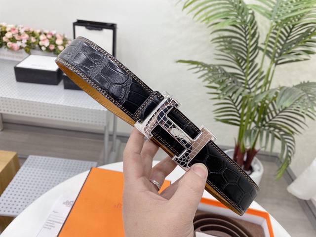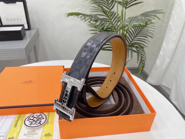 / Heres.马仕原单专柜新款扣头搭配双面进口皮腰带龙纹最新皮纹提升了皮带本身的档次带头精钢打磨 不褪色宽度3.8工艺精湛 结合原单支持验货! 附带原版包装