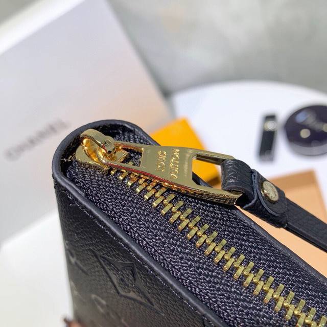 颜色 黑尺寸 19X10牛皮压花 路易威登百年经典传承 经典的外观 内设三个隔层 8个卡片槽 可轻松放入现金 各种消费卡 单据等等,内外更有安全拉链开合 大小抓在手上都比较舒适,可单独使用,也可置于大包内,自用和送礼均为佳品