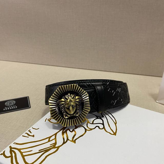 范思哲进口小牛皮,手感细腻柔软。搭配 精品 自动扣 男士必备3.5Cm 配有复古美杜莎搭扣,采用按压式闭合。