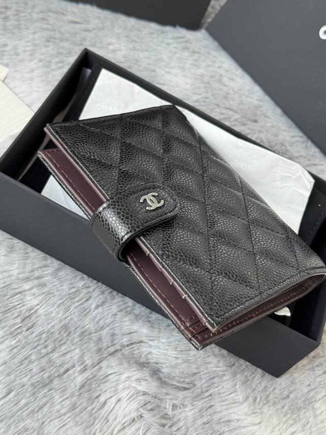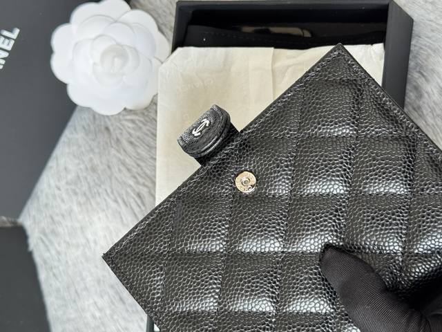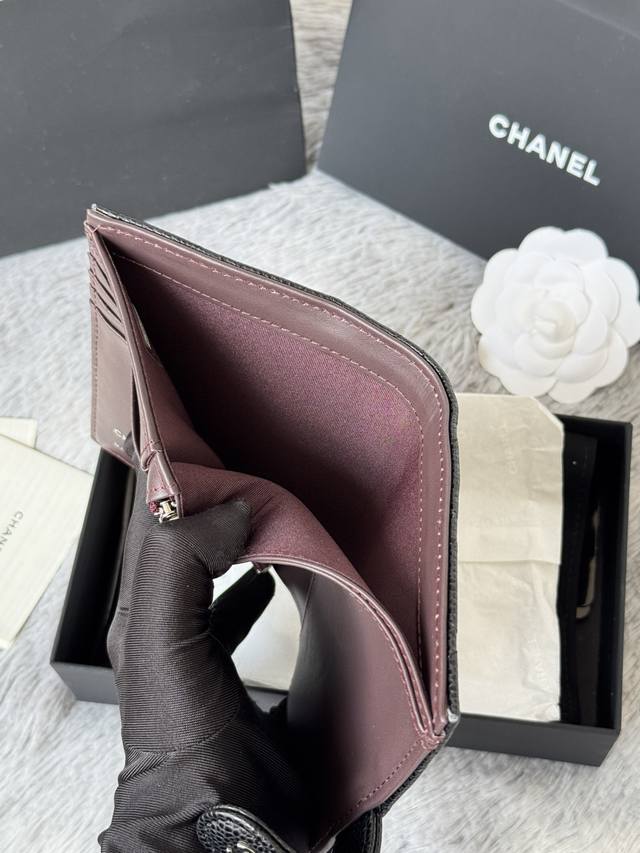 颜色 黑金 黑银 黑黑尺寸 14.5X9实拍香奈儿鱼子酱牛皮零钱包里外全皮经典搭配 时尚百搭