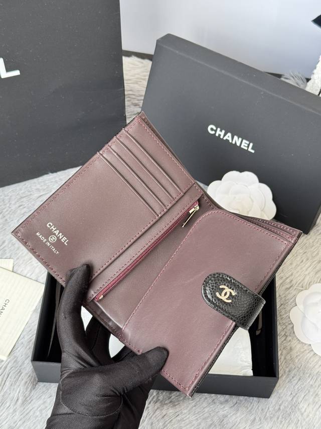 新品Chanel 对折短钱包到货进口牛皮制作内里带零钱袋...
