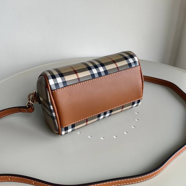 / 顶级版本 原厂皮 巴宝莉立挺设计,装饰 Bur 格纹,搭配皮革裹覆挂锁和行李吊牌。 尺寸:18.5 X 11 X 12Cm