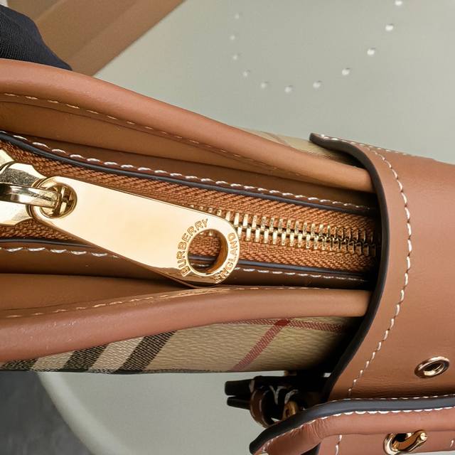 顶级版本 原厂皮 顶级B家斜跨包,意大利制包款,装饰 Burberry 格纹。亮眼融入扣环束带设计,灵感源自品牌标志性 Trench 风衣。26 X 6 X 12Cm装饰:100%小牛皮.内衬:100%羔羊皮.可调式肩背带.拉链开合.按扣束带.拉链内袋.手绘涂漆边缘.光泽金属配件