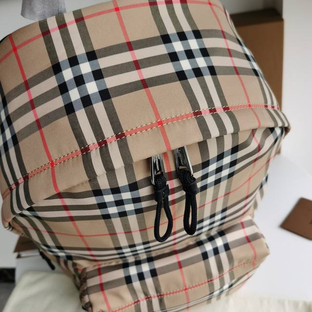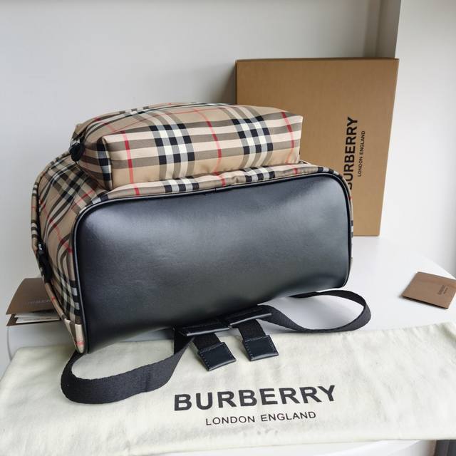/ 顶级版本 原厂皮 巴宝莉最新款尼龙双肩包,装饰 Vintage 复古格纹,搭配平滑皮革边饰,肩背带饰有 Burberry 字母提花精纺徽标。尺寸:30.5 X