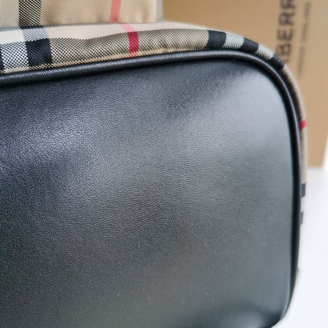 顶级版本 原厂皮 巴宝莉立挺设计,装饰 Bur 格纹,搭配皮革裹覆挂锁和行李吊牌。 尺寸:18.5 X 11 X 12Cm