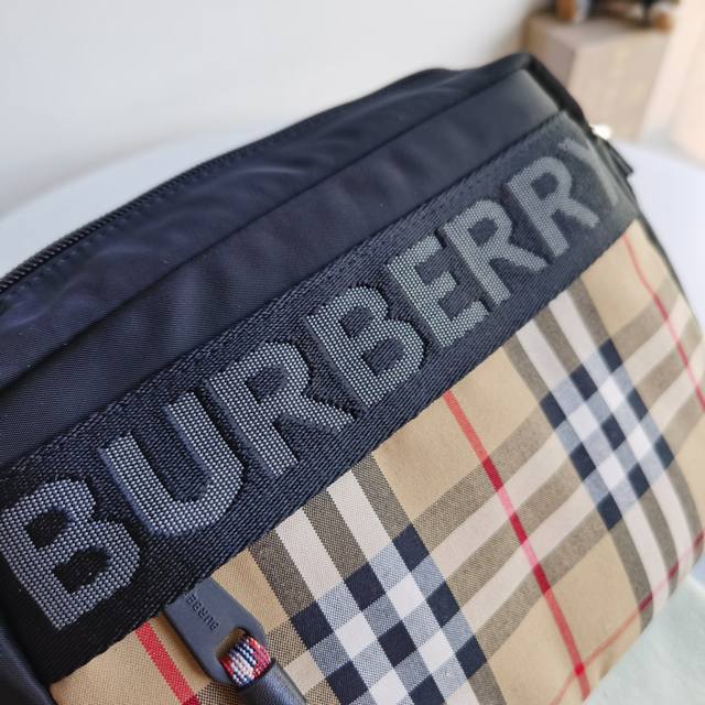 顶级版本 原厂皮 巴宝莉新款男士相机包Vintage拼色复古格纹斜背包、腰包!经典格纹面料配头层牛皮牛皮、抢眼拉链皮革、亮眼拼色设计随附可调节网纹背带、可斜背或