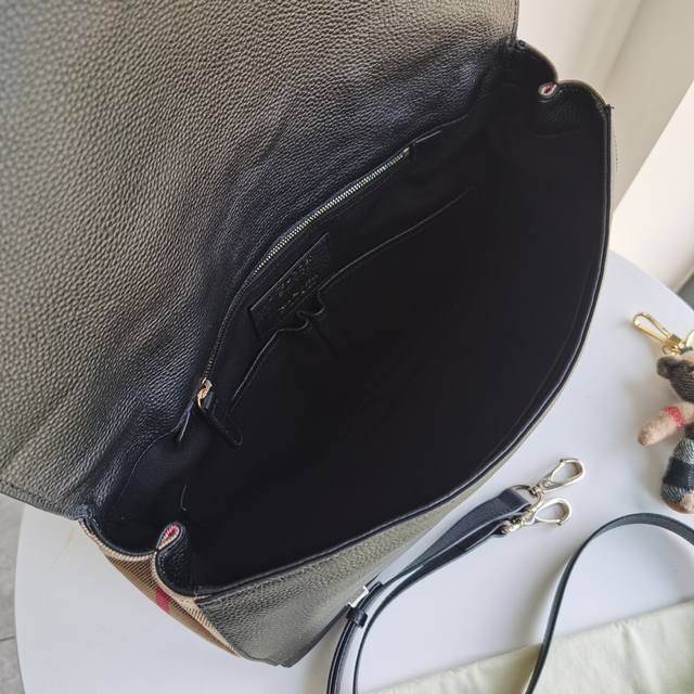 顶级版本 原厂皮 巴宝莉经典款侧棉男士邮差包公文包,荔枝纹头层牛皮材质,风格优雅的斜背包,采用奢华皮革精制而成,侧边饰有英格兰精纺的 House 格纹棉质裁片。包款内部空间充裕,可轻松装纳随身物品,并搭配正式西装造型。随附可调式背带,手拎或斜挎两相宜。肩背带最短长度:110Cm肩背带最长长度:126Cm外层:100%小牛皮装饰:100%棉内衬:100%棉1个拉链内袋;2个内插袋;2个笔袋可拆可调式肩背带翻折式前盖采用磁扣与搭扣开合正面翻盖饰有 Burberry 立体字母徽标尺寸:37 11 26Cm