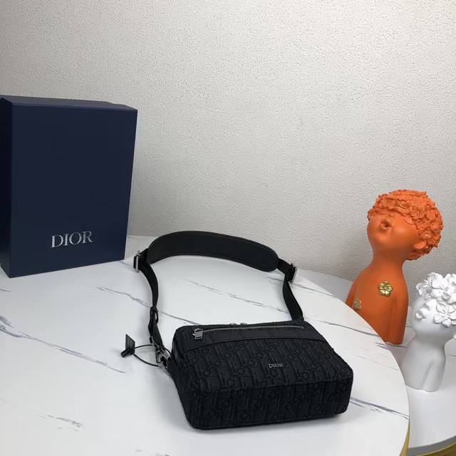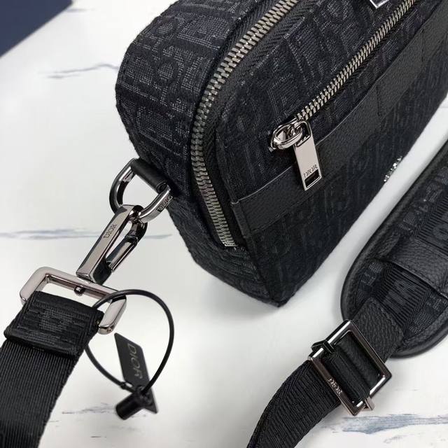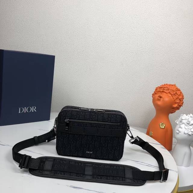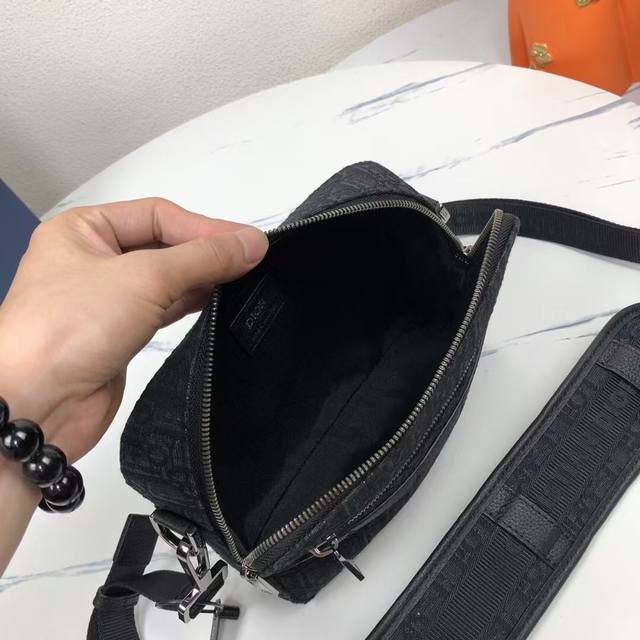 实用紧凑的款式,作为日常单品,理想的野生动物园信使包。由黑色Dior Oblique花纹材质制成,以黑色小牛皮细节为特色。通过拉链的收纳空间和前面的口袋,可以将日常用品放在附近,利用可调节长度的Christian Dior肩带,可以作为肩包或交叉包进行演出。