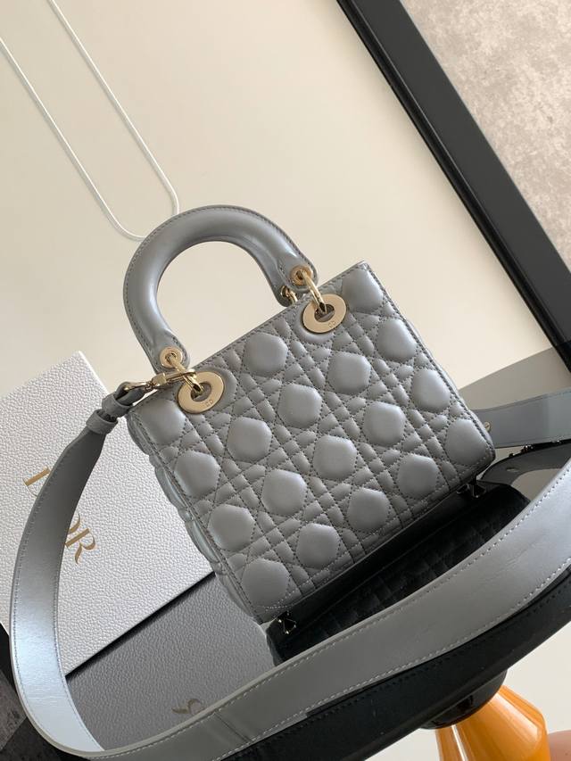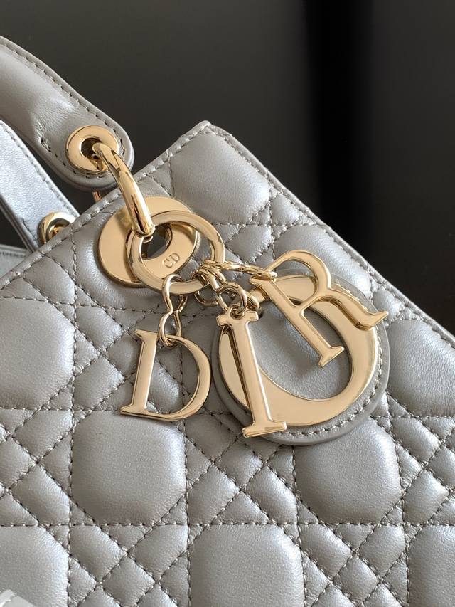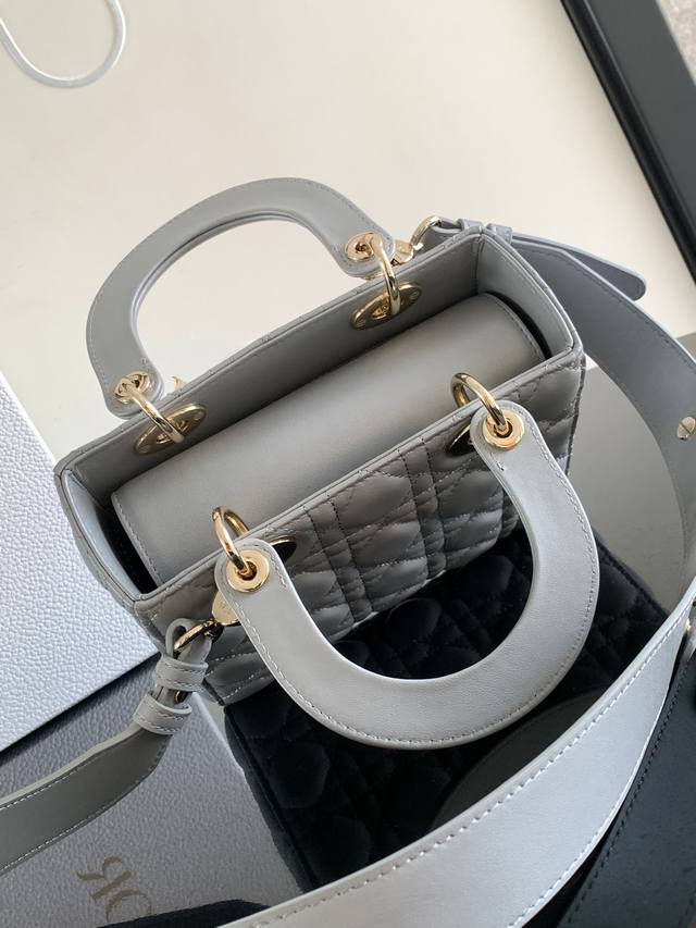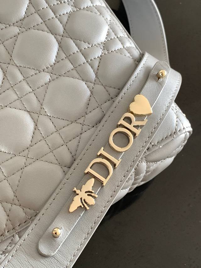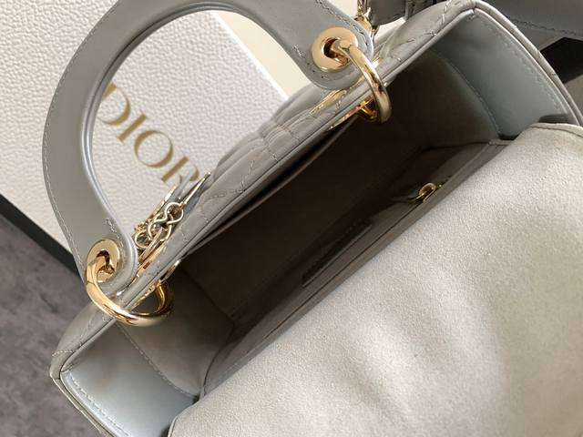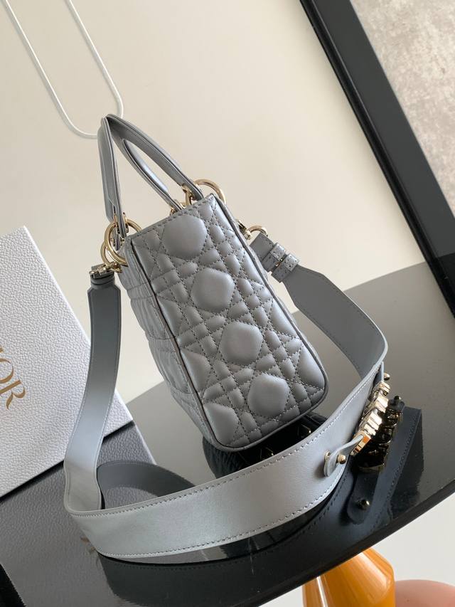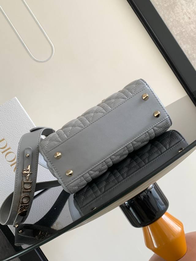 这款 Lady Dior Dior 手袋集中体现了 Dior 对优雅和美丽的深刻洞见。采用黑色羊皮革精心制作,以藤格纹缉面线打造醒目的绗缝细节,时髦典雅的设计经久不衰。缀有浅金色饰面金属 D.I.O.R. 吊饰,彰显优雅气质。小号款式,设计别致,肩带可饰以徽章彰显个性,可手提或斜挎。