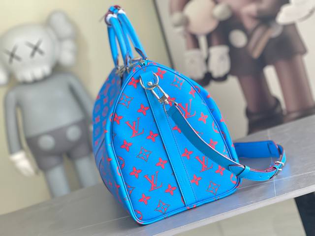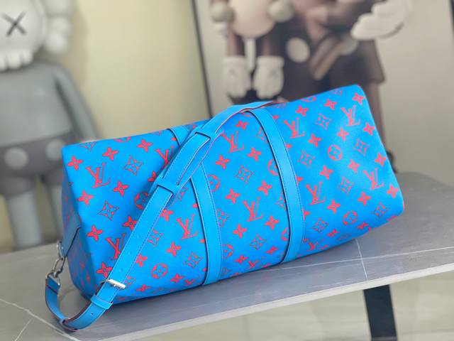 / M14834 Keepall BandoulièRe 50 藍色Monogram Bandana圖案以獨特的漂染效果呈現,為這款以柔軟皮革及經典線條製作的Kee