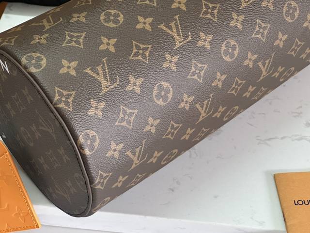 顶级原单 M46691 黄皮 本款 Soft Polochon 手袋融合 Monogram Macassar 帆布和亮色皮革细节,令别致的圆柱轮廓更显摩登,为携
