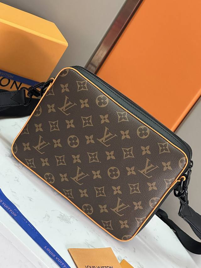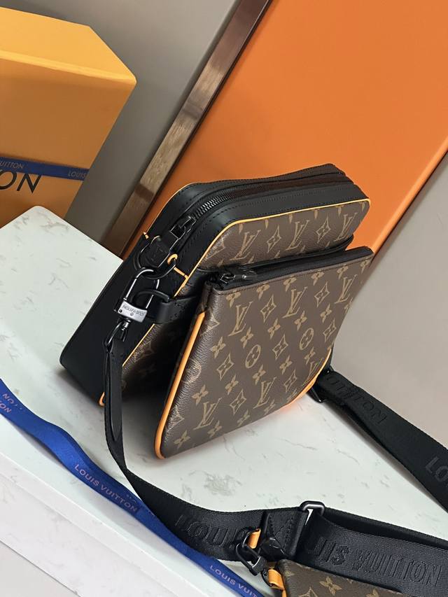 / 顶级原单 M46694 黄皮配老花 Trio 邮差包由 Monogram Eclipse 帆布与 Monogram Eclipse Reverse 帆布制成。标