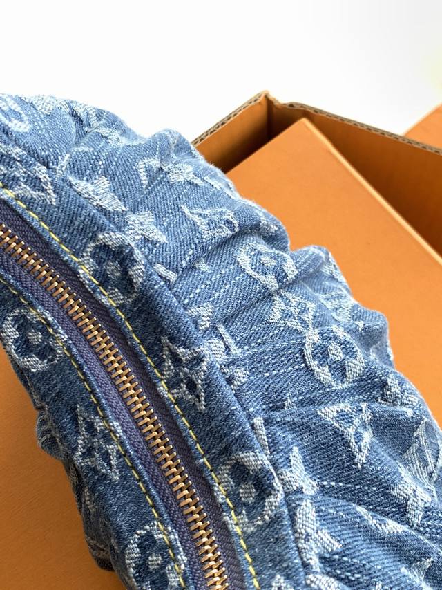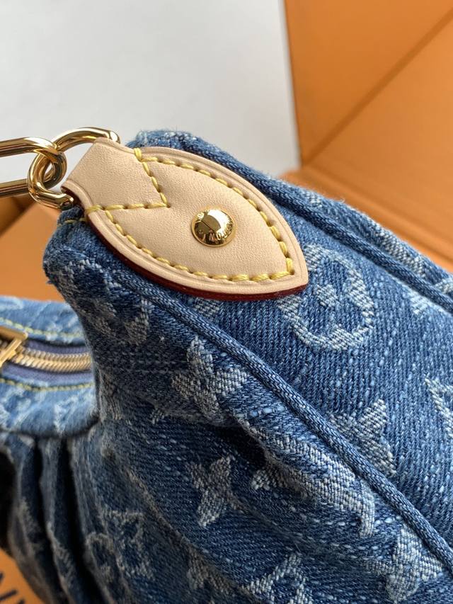 手袋取材 棉质丹宁布,搭配撞色牛皮革饰边和耀目金属件,令经典设计绽放摩登风范。取下手柄即可化身手拿包。