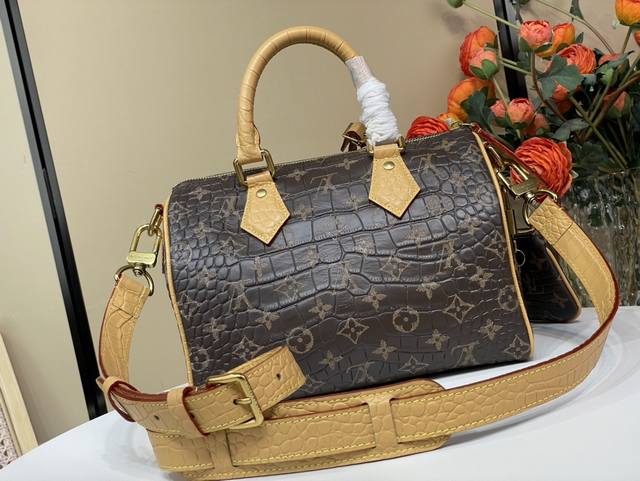 顶级原单复刻独家实拍 Speedy P10 BandoulièRe25 手袋 M24425老花 牛皮压鳄鱼纹