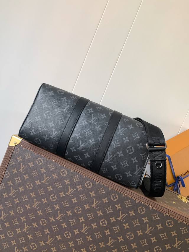 M46655 黑花 M22765压花 顶级原单 变码芯片 本款 Keepall BandoulièRe 35 手袋借 Monogram Eclipse 涂层帆布传递内敛气度。皮革顶部手柄、侧带和金属件彰显经典传承,可拆卸并调节的肩带实现舒适肩背。34.0 X 21.0 X 16.0 厘米 长 X 高 X 宽