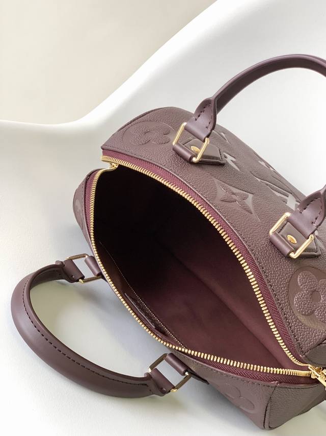动态芯片 M59273杏色M58951黑色 枣红Speedy BandoulièRe 25 手袋于 秋季 Wild At Heart 胶囊系列瞩目再现,为 Monogram Empreinte 皮革压印超大 Lv 字母,可拆卸肩带增添斜挎选择。尺寸:25.0 X 19.0 X 15.0 厘米 长 X 高 X 宽 。