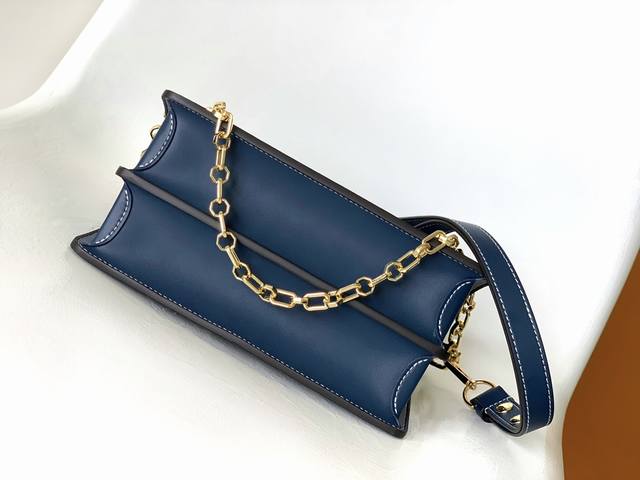 顶级原单 M59631 对版牛仔蓝 本款 Dauphine 中号手袋取材 经典Logo牛仔布 彰示对牛仔可持续工艺的不懈追求,与牛皮革饰边共同传递新复古主义气息。可拆卸链条和内隔层增添功能细节。尺寸:25 X 17 X 10.5 厘米 长度 X 高 X 宽