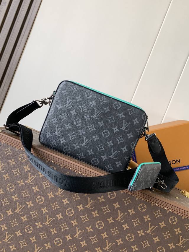 / M26052绿色 顶级原单 变码芯片163C 新款男包三件套邮差包系列 本款 Trio 邮差包以 Monogram Eclipse Reverse 帆布和瞩目细