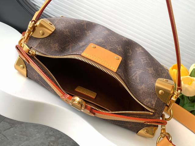 动态变码芯片 顶级原单加强版 M11536老花 本款 Soul Trunk East West 手袋取材 Monogram Dust 帆布,以加固金属包角展现