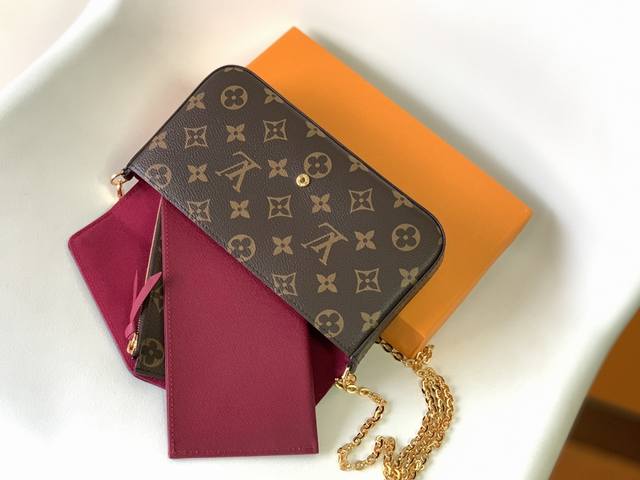 / M61276Pochette Felicie 手袋优雅小巧,内含两个可脱卸口袋,是携带整理您的日常用品的时尚之选。它不仅仅是款钱夹,除去金色链条后,它还可以用作
