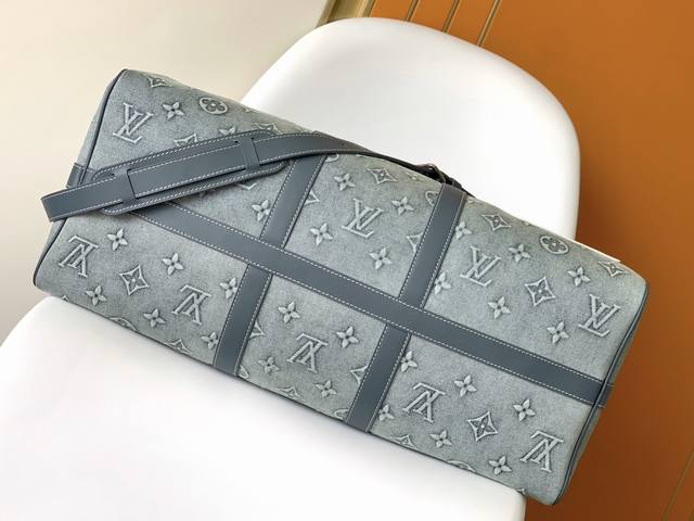 / P顶级原单 M22532 牛仔布 本款 Keepall BandoulièRe 50 旅行袋为褪色丹宁布压印 Monogram 图案,重塑路易威登的经典设计之一