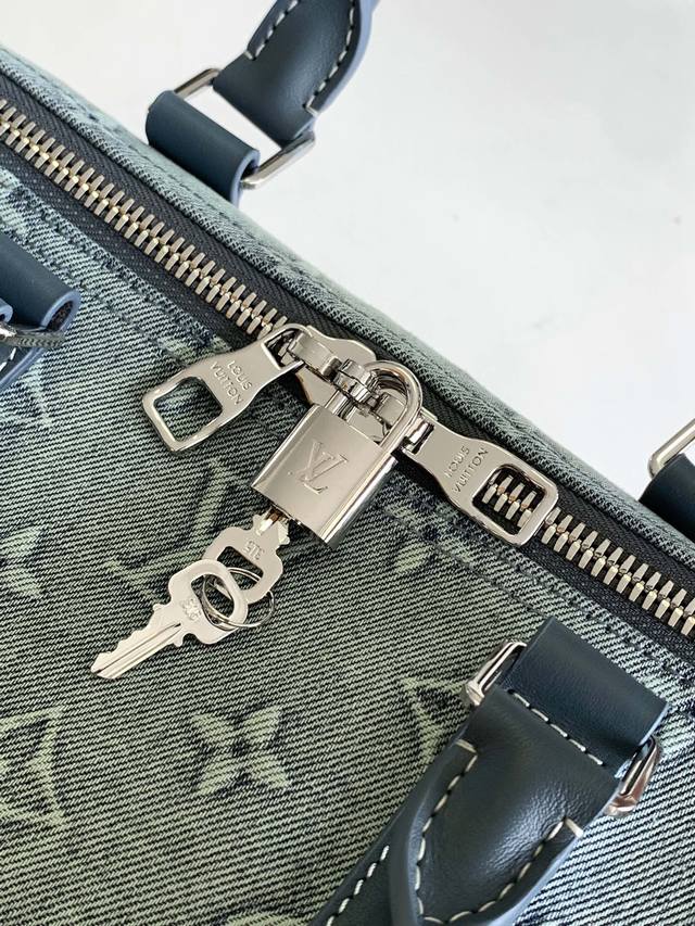 P顶级原单 M22532 牛仔布 本款 Keepall BandoulièRe 50 旅行袋为褪色丹宁布压印 Monogram 图案,重塑路易威登的经典设计之一