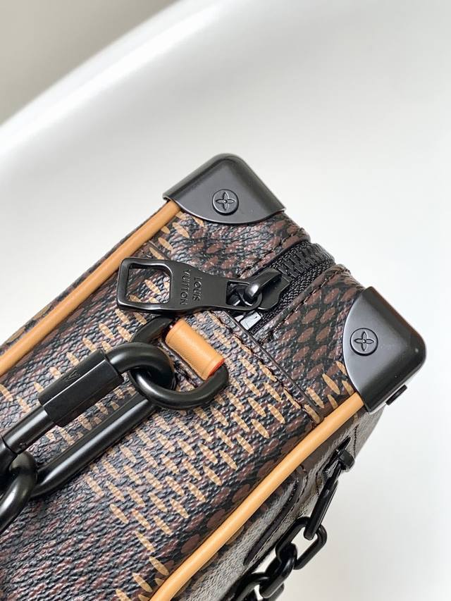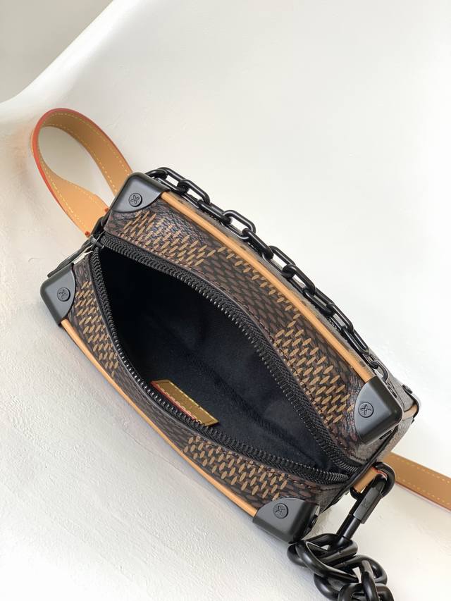 / 顶级原单 M60394Mini Soft Trunk 链条包令帆布表面呈现醒目 Damier Ebene 图案,其箱型设计和加固边角折射品牌制箱传承,哑光链条再