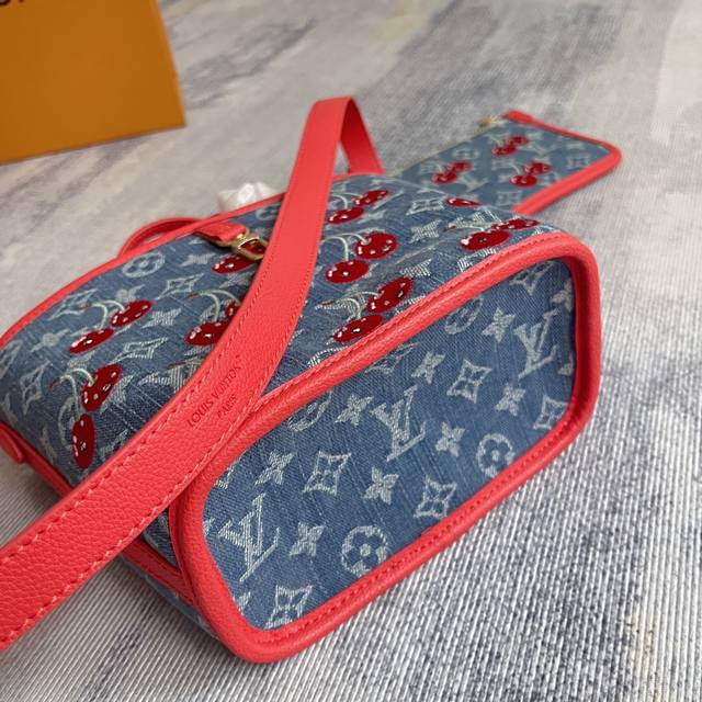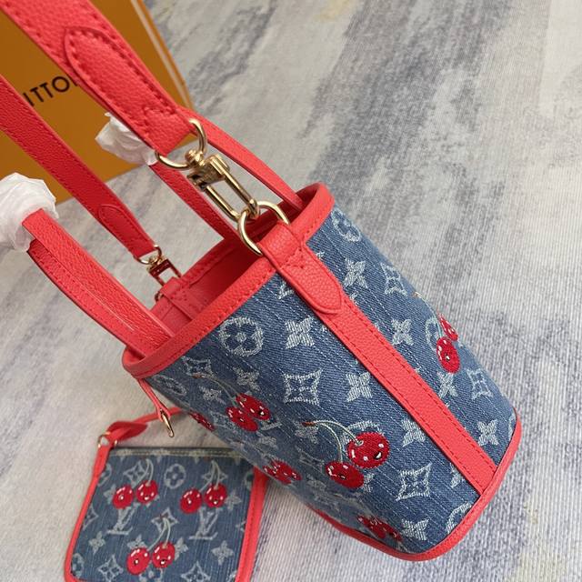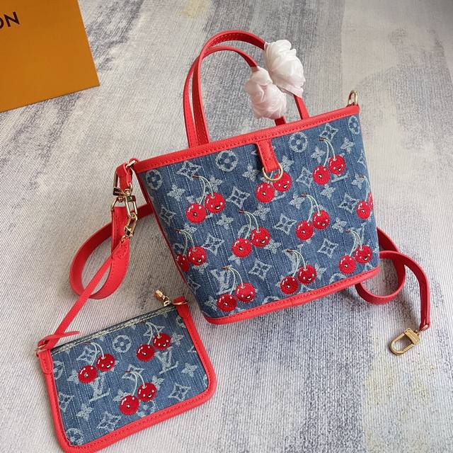 M14997 对版刺绣 顶级原单 动态163 本款 Neverfull Inside Out Bb 手袋出自路易威登 X 村上隆跨界合作复刻系列,为 Monogram 丹宁布包身勾勒明丽牛皮革饰边,以瞩目笔触诠释灵动格调。绚丽樱桃刺绣致意日本艺术家的鲜明风格,可拆卸丹宁拉链袋完善设计。26.5 X 16.5 X 11.0 厘米 长 X 高 X 宽