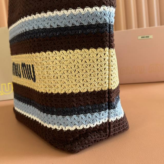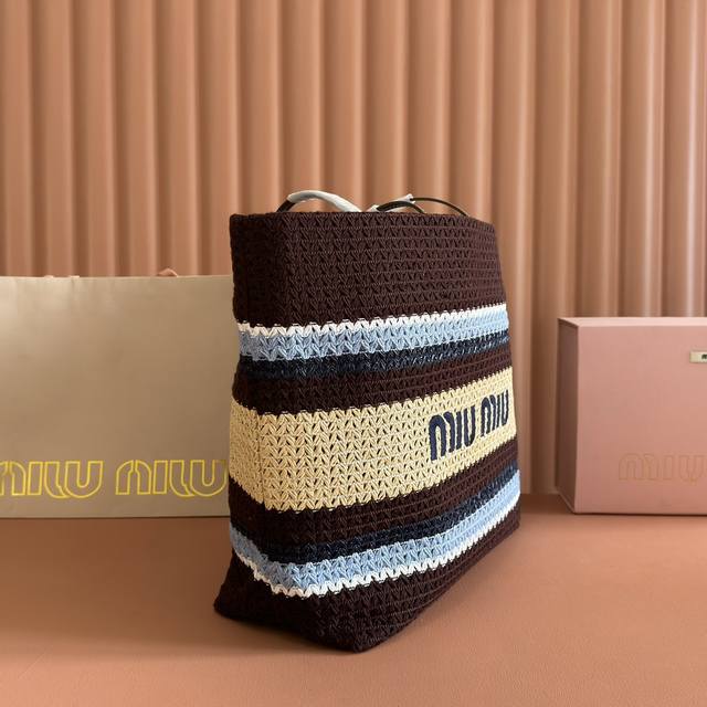 配置专柜全套包装 M家5Bg228,进口拉菲草编拼绵线编织托特包,市场唯一对版品质,正面标志性Miumiu刺绣,棉布里内,超轻,容量超大,出游必备,一年四季都适用,实物超级无敌美,尺寸:40X34X16Cm。