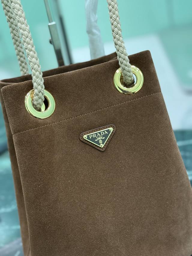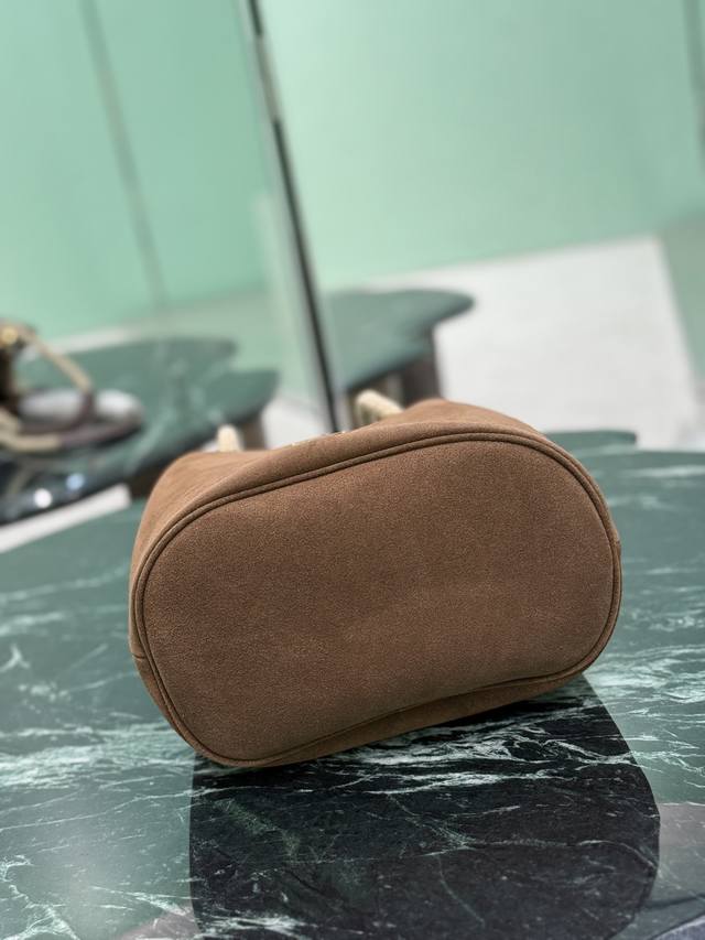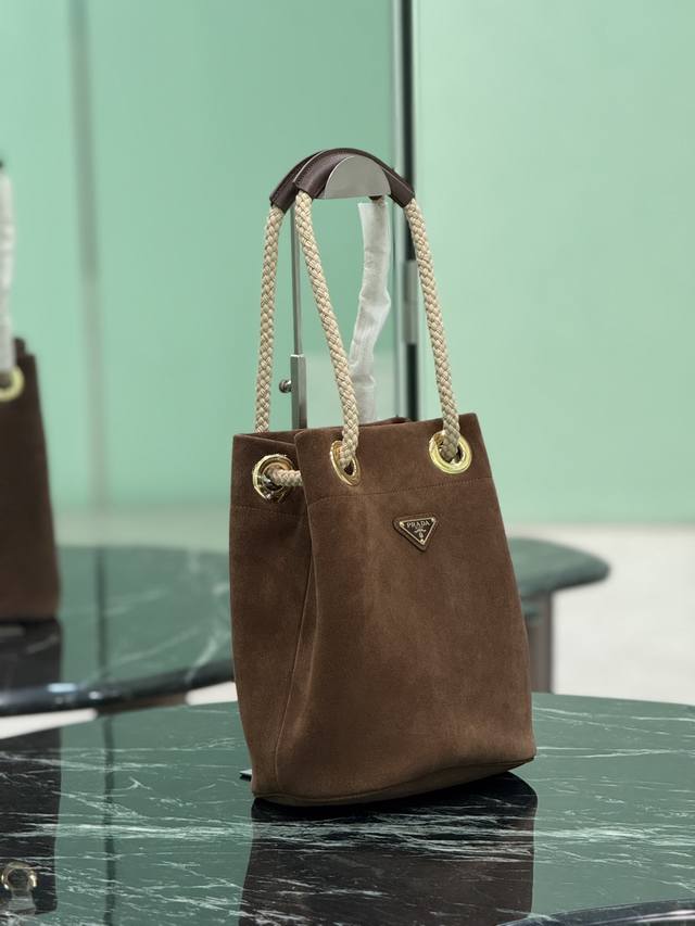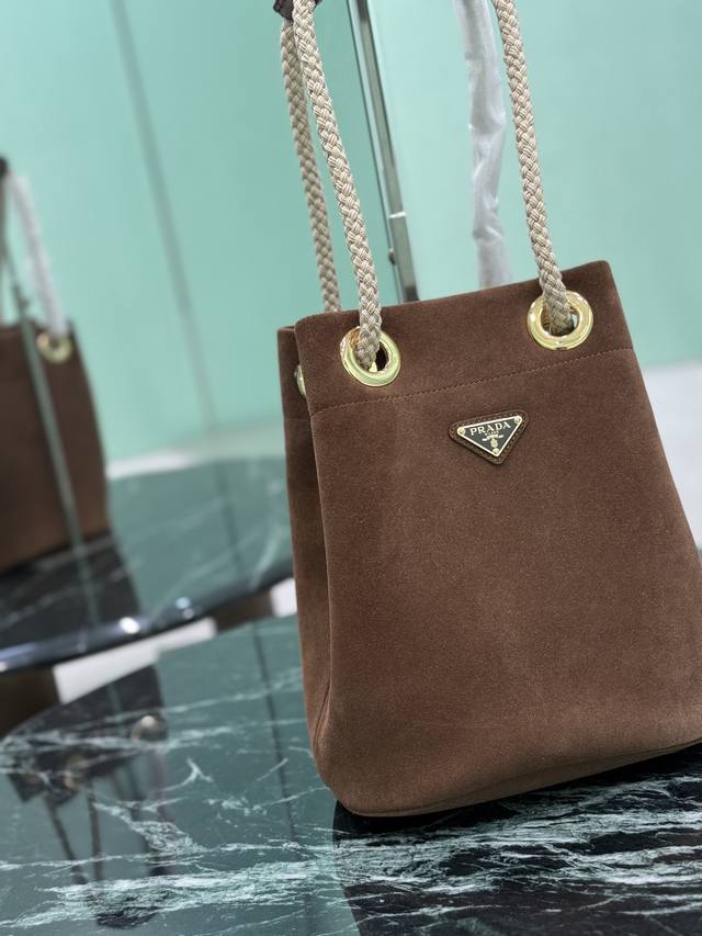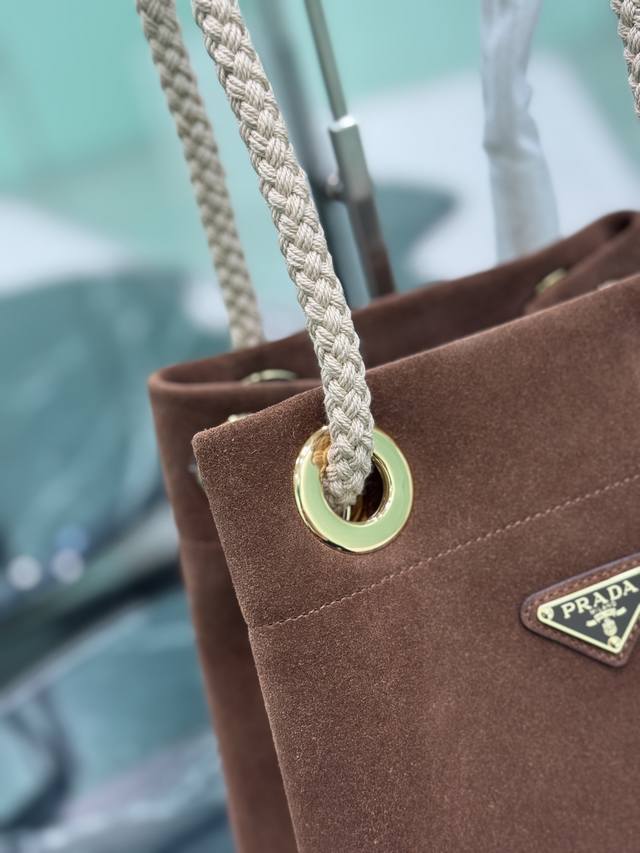 这款Re-Nylon 手袋的設計采用进口麂皮面料和小牛皮。獨特的組合添上迷人點綴。滑動式繩索手挽凸顯這款手袋的靈活百搭,方便手提或肩背 斜跨,顶级五金。容量空间大。