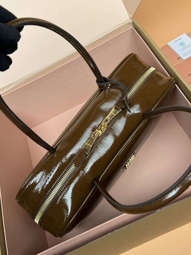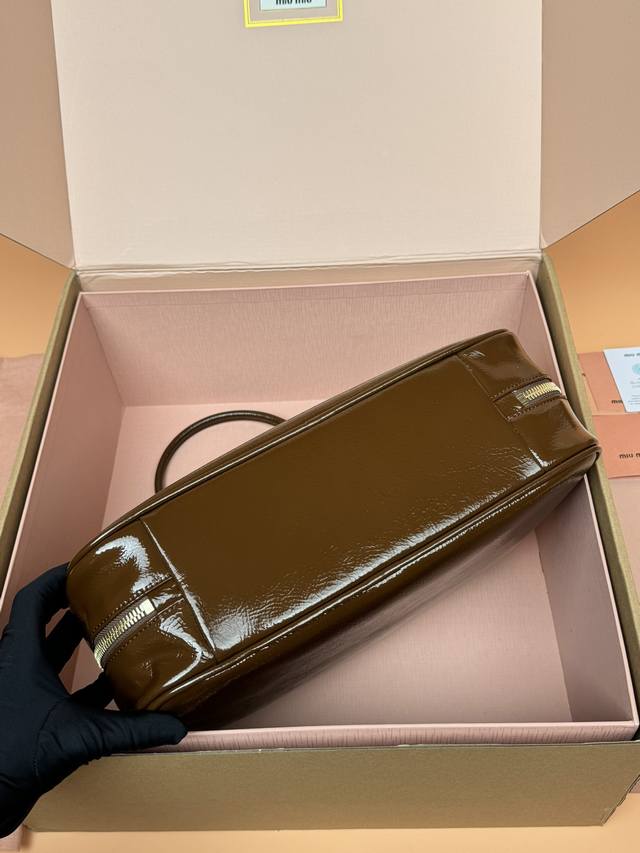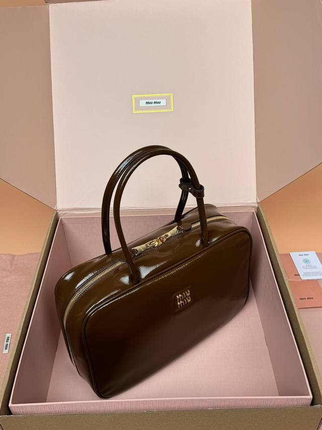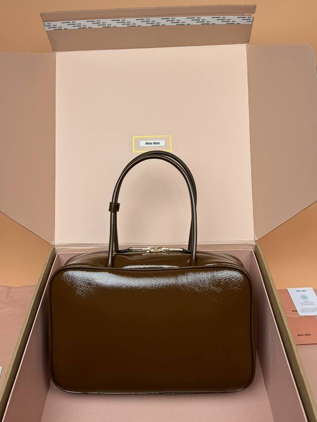 特级五金原厂皮 Beau Naplak漆面羊皮革手提包 单肩包~亮棕