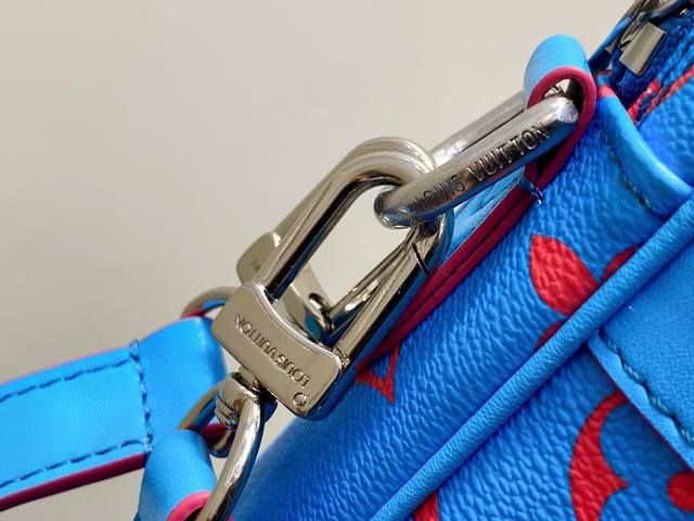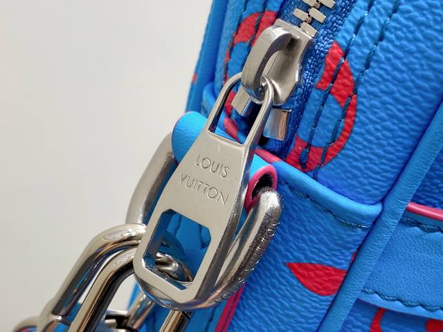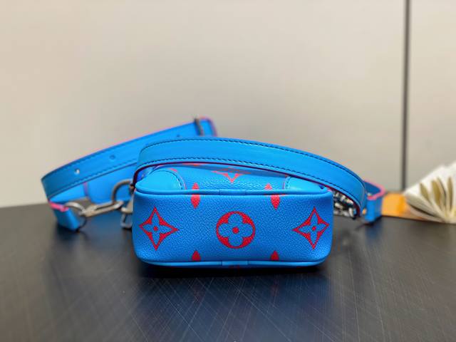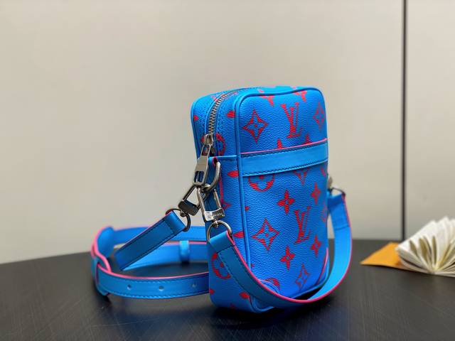 原单精品 M14685蓝色 男 差包 Danube 斜挎包 Danube斜挎包于20世纪80年代推出,最近由Pharrell Williams复兴,在Monogram Glow涂层帆布中脱颖而出。灵感来自迈阿密的霓虹灯,配色为这款紧凑型包增添了现代感。它有一个前平口袋和一个拉链主隔间,增强了其功能。21 X 6 X 16 Cm。