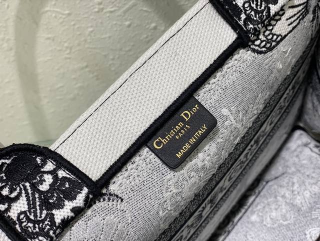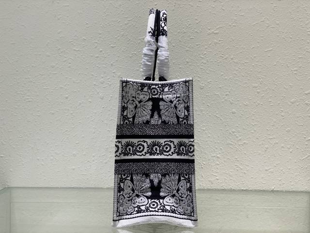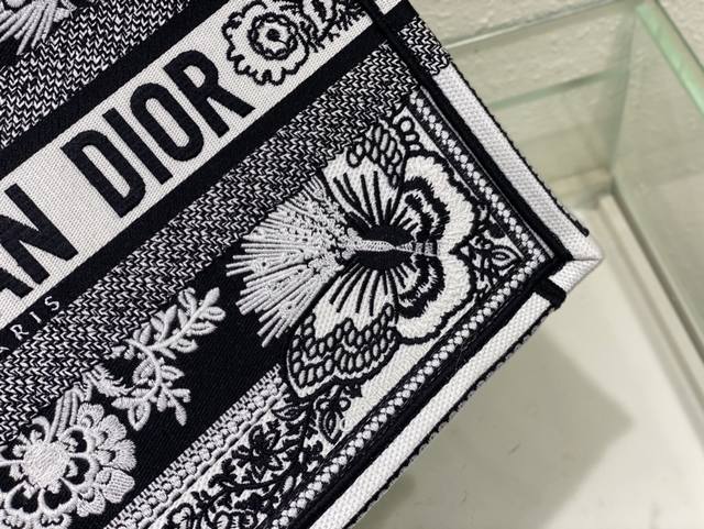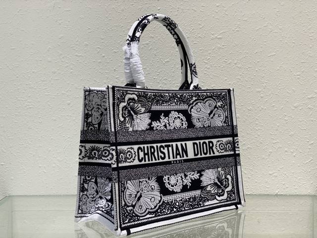 这款 Book Tote 手袋由 Dior 女装创意总监玛丽亚 嘉茜娅 蔻丽 Maria Grazia Chiuri 设计,是体现 Dior 美学的主打产品。米色款式,通体饰以多色 Butterfly Bandana 图案刺绣,蝴蝶与经典饰巾图案的融合巧妙地展现出精美的图形风格,可收纳各种日常用品。中号款式,正面饰以 Ch