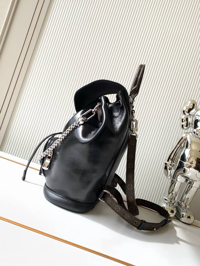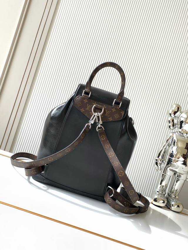 全钢五金 变码芯片 特级配全套包装 M12587黑色 本款 Montsouris 小号双肩包为亮泽羊皮革融入Monogram 细节,巧妙道出 Lv Vibe系列身份。路易威登典藏搭扣与皮革抽绳丰富功能设计,别致金属件成就点睛之笔。拉链前袋令小件物品稳妥随行。详细特征