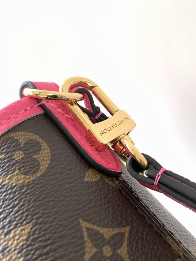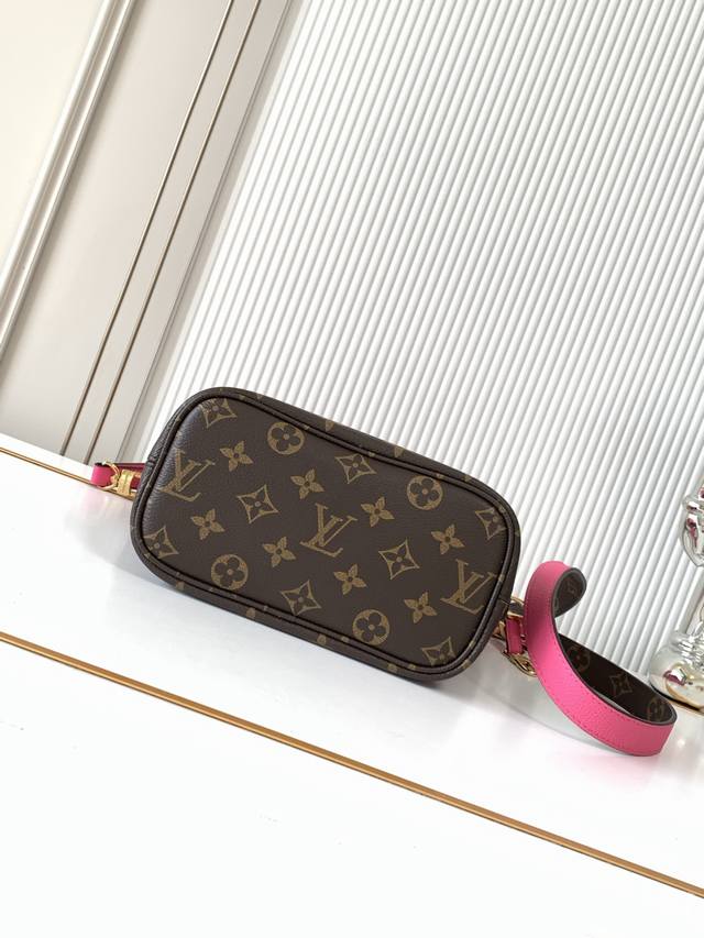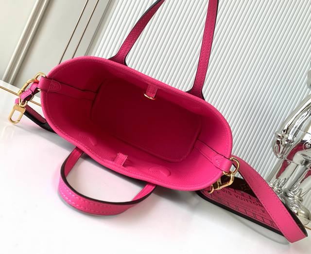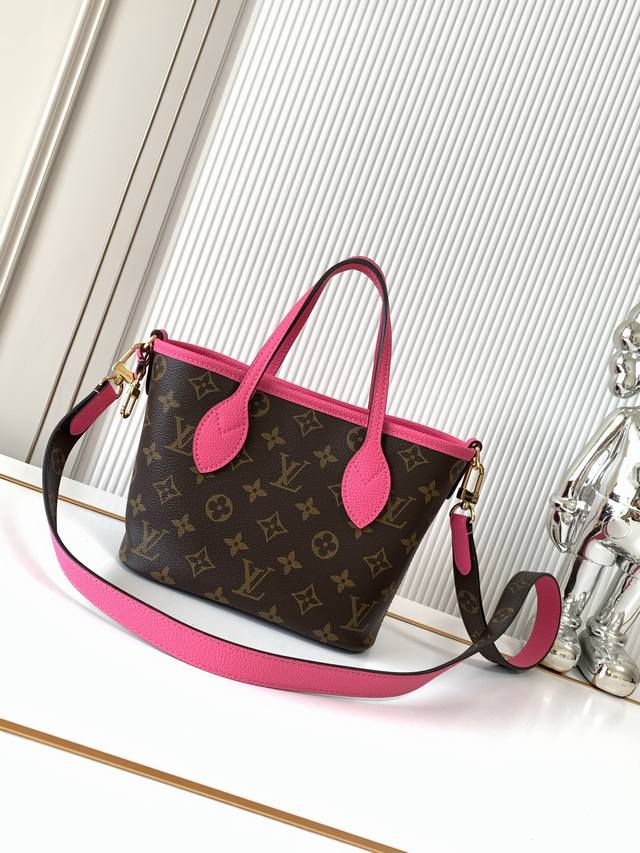 全钢五金 变码芯片 特级配全套包装 款号M12106 老花玫红 Neverfull BandoulièRe Inside Out Bb手袋本季演绎经典设计的双面版本,以标志性 Monogram 帆布和粒面皮革分饰正反面。可拆卸拉链袋既可单独使用,亦可悬挂于外部。可拆卸肩带方便斜挎,耀目金属件再添考究细节。24 X 14 X9厘米 长度X高X宽
