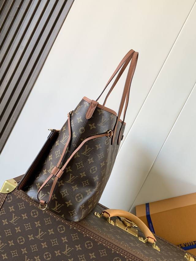 Neverfull Inside Out 中号手袋以 Monogram 帆布与粒面皮革演绎崭新双面设计,其可拆卸口袋便于轻松化身外袋或精巧肩背包。