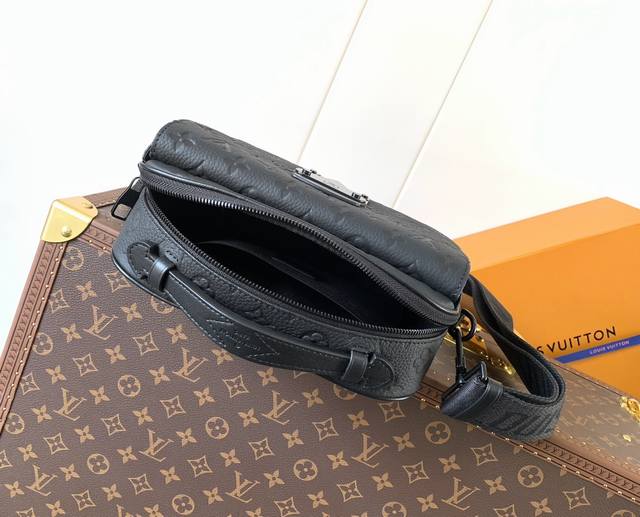 M58489黑压 顶级原单 变码芯片163C 本款 S Lock 邮差包由柔软 Taurillon 皮革制成,选用优雅的黑色色调,点缀品牌传统的 Monogram 压纹图案。磁吸锁扣以 Georges Vuitton 于 1886 年设计的硬箱锁扣为灵感打造,深具摩登气质,可确保物品安全无虞。配有硬箱风格手柄与 Lv 标识肩带,便于背携。
