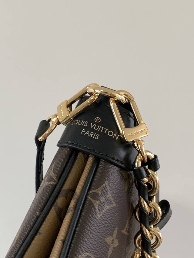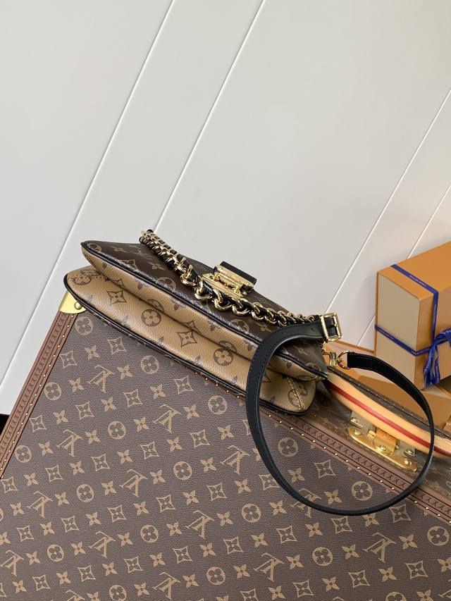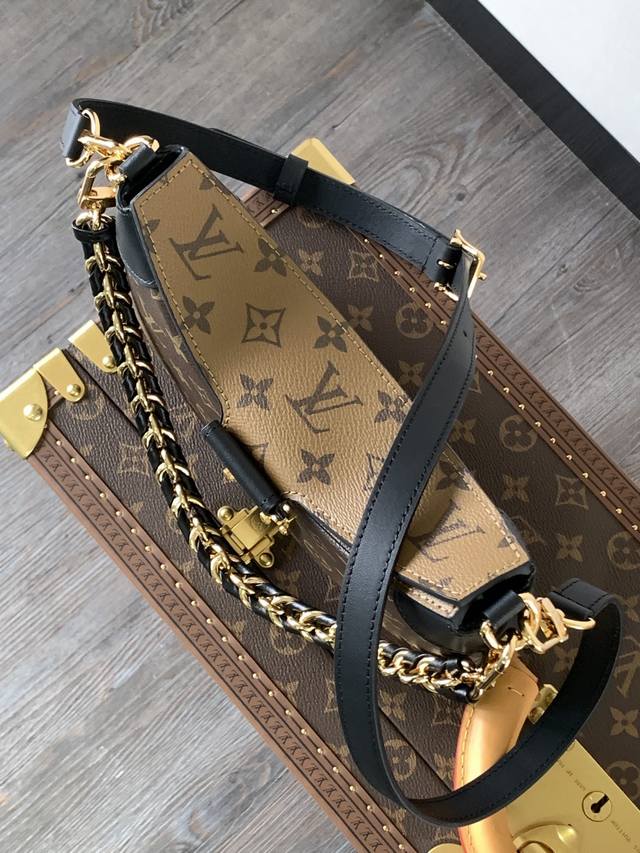 对版细节 顶级原单 M46659 顶级原单本款手袋自品牌档藏馆的经典设计汲取灵感,以 Monogram 与 Monogram Reverse 帆布搭配皮革饰边,惬意而不失考究意味。S-Lock 锁扣与编织链带手柄丰富细节设计,肘挎与长短肩背可随心切换。