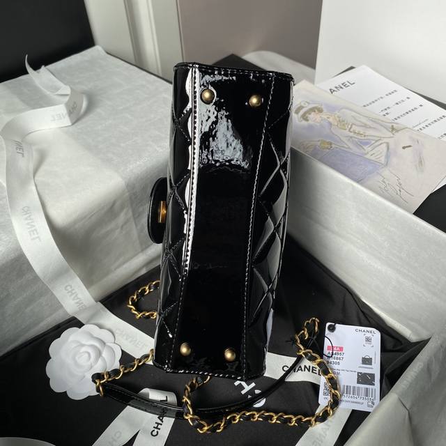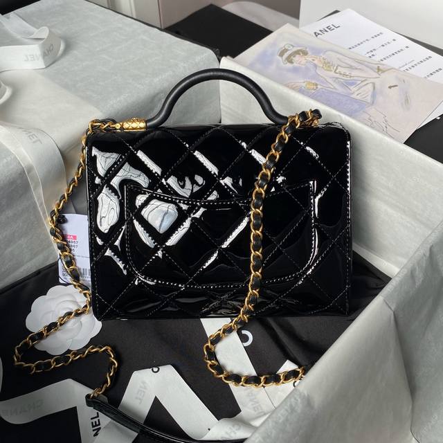 Chane124A 高级手工坊系列 As4957 包包设计漆皮与金属 表现出现代与经典的完美平衡 它具有拱形手柄和链条肩带的组合,使其既可以手提,又可以斜挎。包