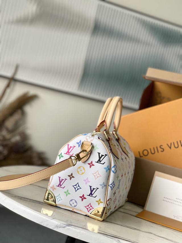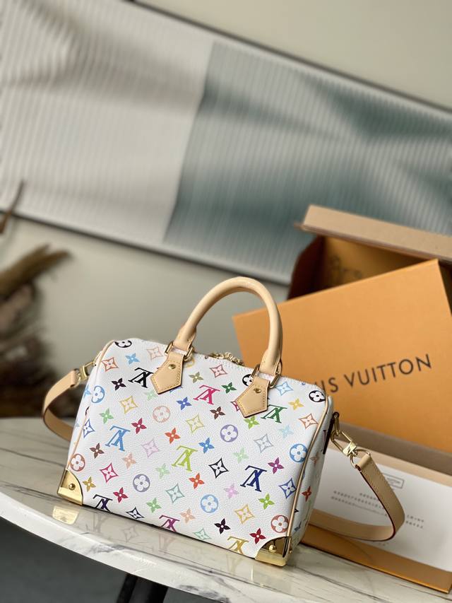 / 顶级原单M13085 本款Speedy Bandouliere25手袋为经典Monogram图案渲染日本艺术家村上隆笔下的明丽色调,与蝴蝶结造型钥匙包一道彰显路