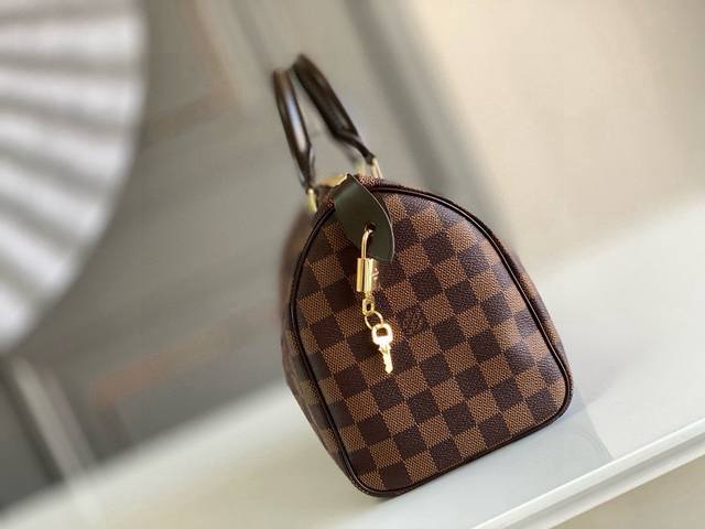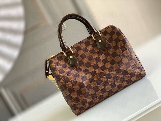 Speedy 25 手袋这款精巧的都市手袋采用优雅的 Damier 帆布制成。 Speedy 25 手袋可搭配任意装扮,并为之平添一份时尚别致之感。