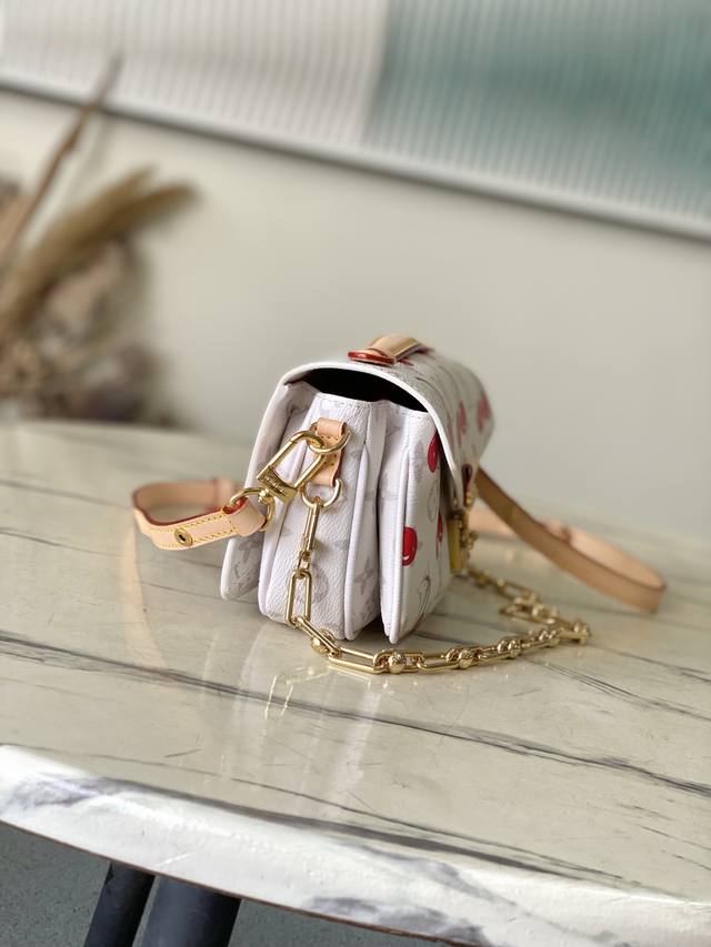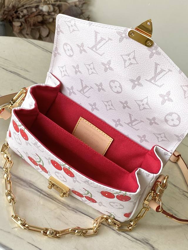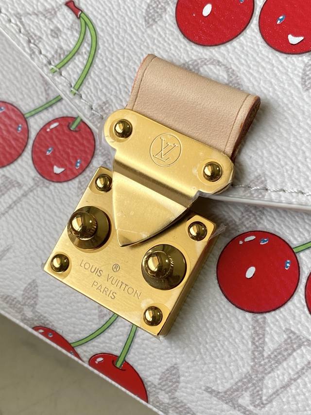 钢五金 顶级原单 M14231 本款Pochette Metis East West手袋出自路易威登X村上隆复刻系列,为Monogram涂层帆布浸染新季柔和色调,与艺术家笔下的甜美樱桃图案相映成趣。莹泽S-Lock锁扣点亮整体设计,精巧构型内设多重隔层,成就日常出行的优雅之选。尺寸:21.5 × 13.5 × 6 Cm