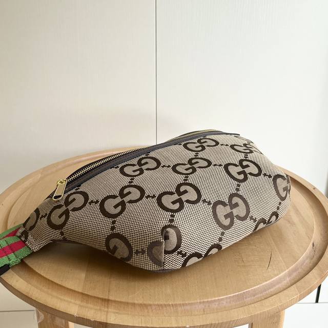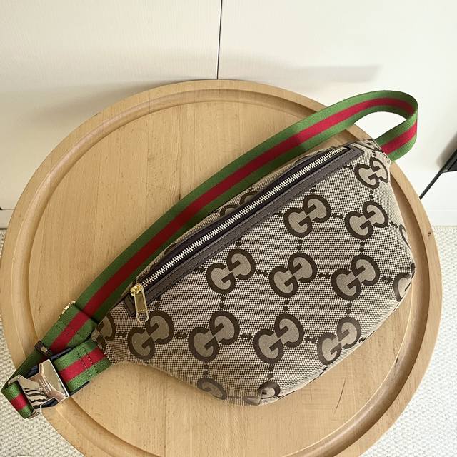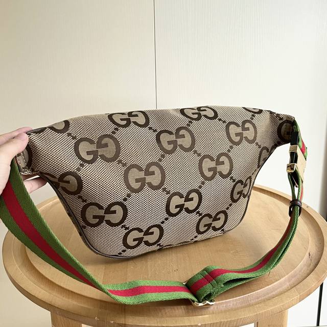 / 实拍# 款号:696031咖布升级版 原单布+织带 尺寸:39X17X4Cm Gucci超级双G Jumbo系列腰包 红绿织带腰带可调节长短 容量超能打! 自重