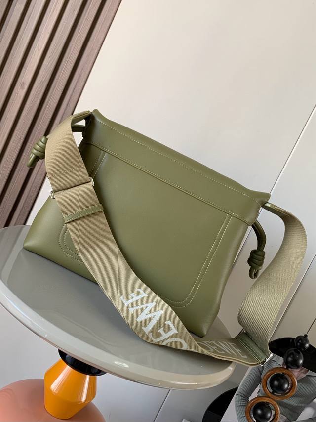 亮面柔软牛皮革 Flamenco Satchel 手袋新品这款手袋将经典 Flamenco手袋重新设计为实用的斜挎包采用拉绳收紧,并打上标志性的盘绕结此版本以亮面柔软牛皮革制成,内部采用绒面革。*斜挎、肩背或手提*可调节可拆卸 Loewe 织带*牛皮革拉链内袋和 D 形环* Loewe 烫银