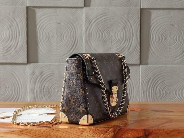163C01动态芯片 顶级原单、加强版Trunkie 手袋结合 Monogram 帆布和金属铆钉,搭配金属质感包角和标志性 S-Lock 锁扣,以复古行李箱格调
