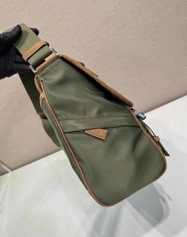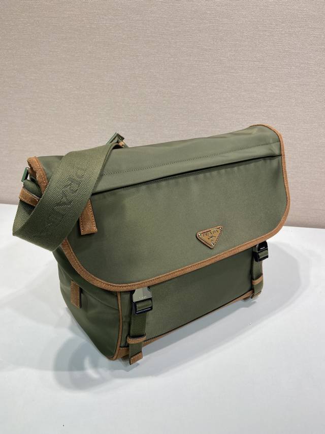 这款邮差包由Re-Nylon再生尼龙面料设计,配撞色小牛皮,翻盖和按锁开合,三个外部拉链式口袋,内部拉链式口袋和贴袋。容量空间大,又是一款永久不过时爆款。帅哥们,赶紧入吧